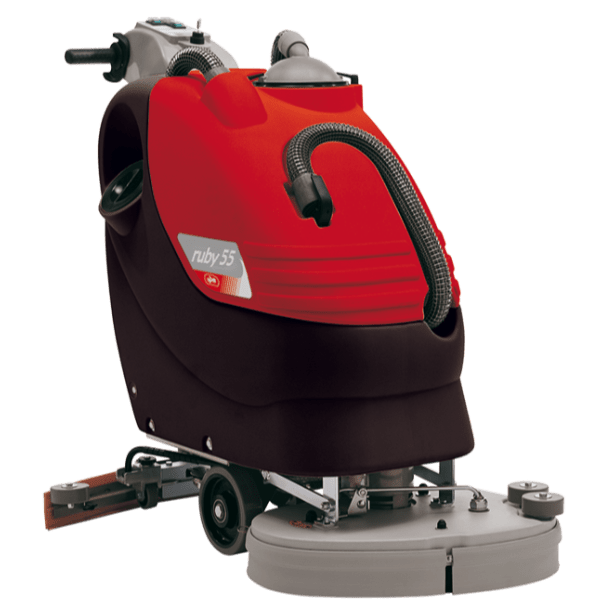 Automat szorująco-zbierający Adiatek Ruby 55E jest maszyną zasilaną kablowo przeznaczoną do codziennego sprzątania i doczyszczania powierzchni podłogowych. Szczotka posiada szerokość roboczą 55cm poprzez zastosowanie dwóch szczotek o szerokości 275mm. Maszyna posiada zbiornik na wodę z detergentem o pojemności 45L, natomiast zbiornik na brudną został powiększony do 48L aby zbierać nadmiar zabrudzeń z podłogi. Sugerowana przez producenta wydajność teoretyczna wynosi 1925m2. Maszyna została wyposażona w czytelny i wygodny w użyciu panel sterujący zabezpieczony przed wilgocią. Dodatkowe koło transportowe oraz podnoszona głowica szczotek ułatwią przemieszczanie się pomiędzy pomieszczeniami. Automat szorująco-zbierający z serii Ruby jest idealnym rozwiązaniem dla szkół, szpitali, ciągów komunikacyjnych oraz czyszczenia miejsc garażowych.